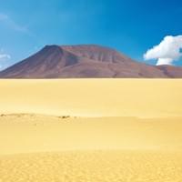 Corralejo Dunes Natural Park: This park is known for its extensive sand dunes that stretch for miles, offering a desert-like landscape with views of the Atlantic Ocean. The stark contrast between the golden dunes and the deep blue sea creates visually stunning imagery, ideal for adventure, sci-fi, or surreal scenes.